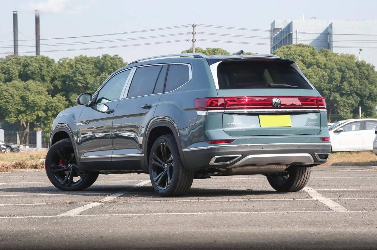 大眾途昂的車側保持了相對方正的體態,車窗邊緣利用鍍鉻飾條包覆,并在尾窗區域帶有了上翹的夾角設計,讓車尾產生了提拉觀感。腰身的筋線沿著輪拱和車身進行延伸,同時車門下方帶有微微內凹的結構,車身裙邊區域均包覆了黑色組件,在視覺上也增加了硬朗氣質,車尾的整體輪廓保持了厚重敦實的風格,尾部采用了較為粗壯的貫穿式燈組,內部增加了橫向的Y字燈帶,保持了相對前衛的照明效果。車尾底部采用了與車頭相近的底部護板,并增加了雙出的排氣裝飾,也在細節處增加了運動感。