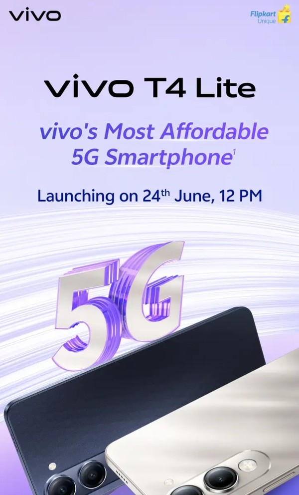 此前,vivo T4 Lite 5G手機的宣傳頁面在海外電商平臺上線。近日,官方已正式確認該款手機將于6月24日12點在印度發布。