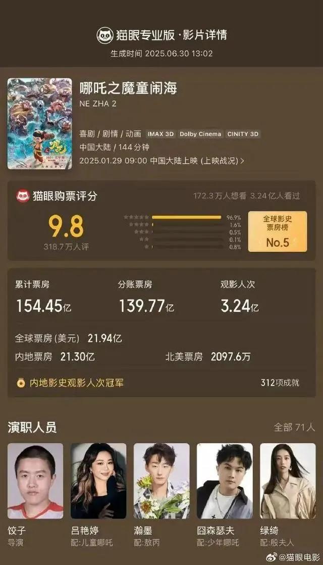 家人們,誰懂啊!《哪吒2》票房一路狂飆到154億,沖到了全球電影榜三。本以為電影行業要賺麻了,結果電影院居然還在哭窮,一個榜三的電影還哭窮,這反差感真的絕了。