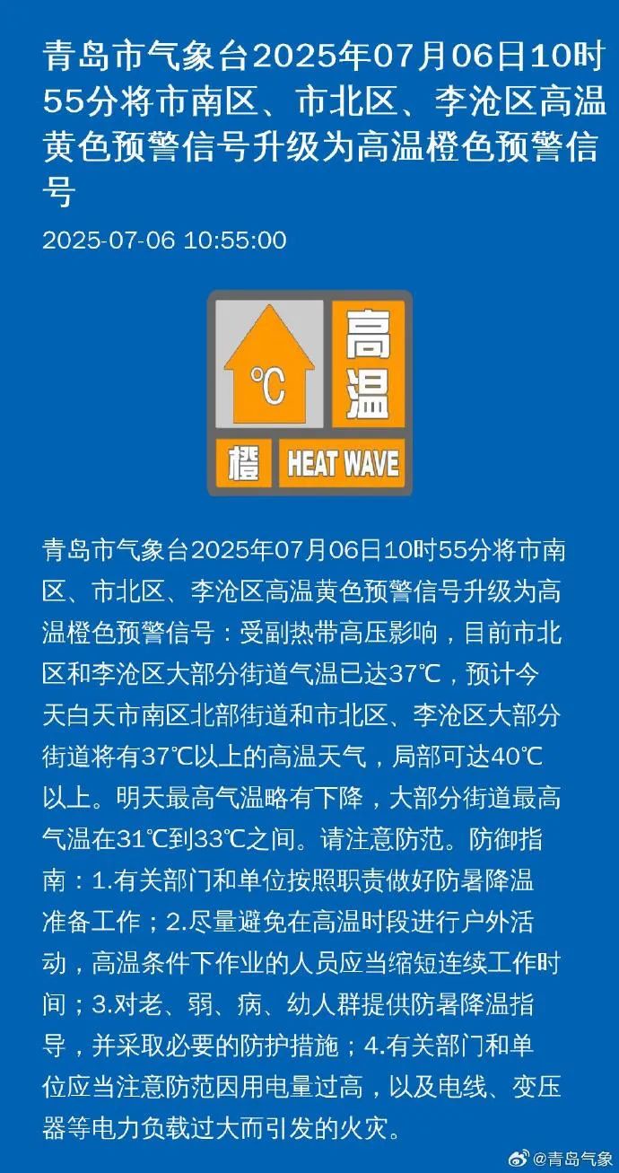 升級為高溫橙色預警信號