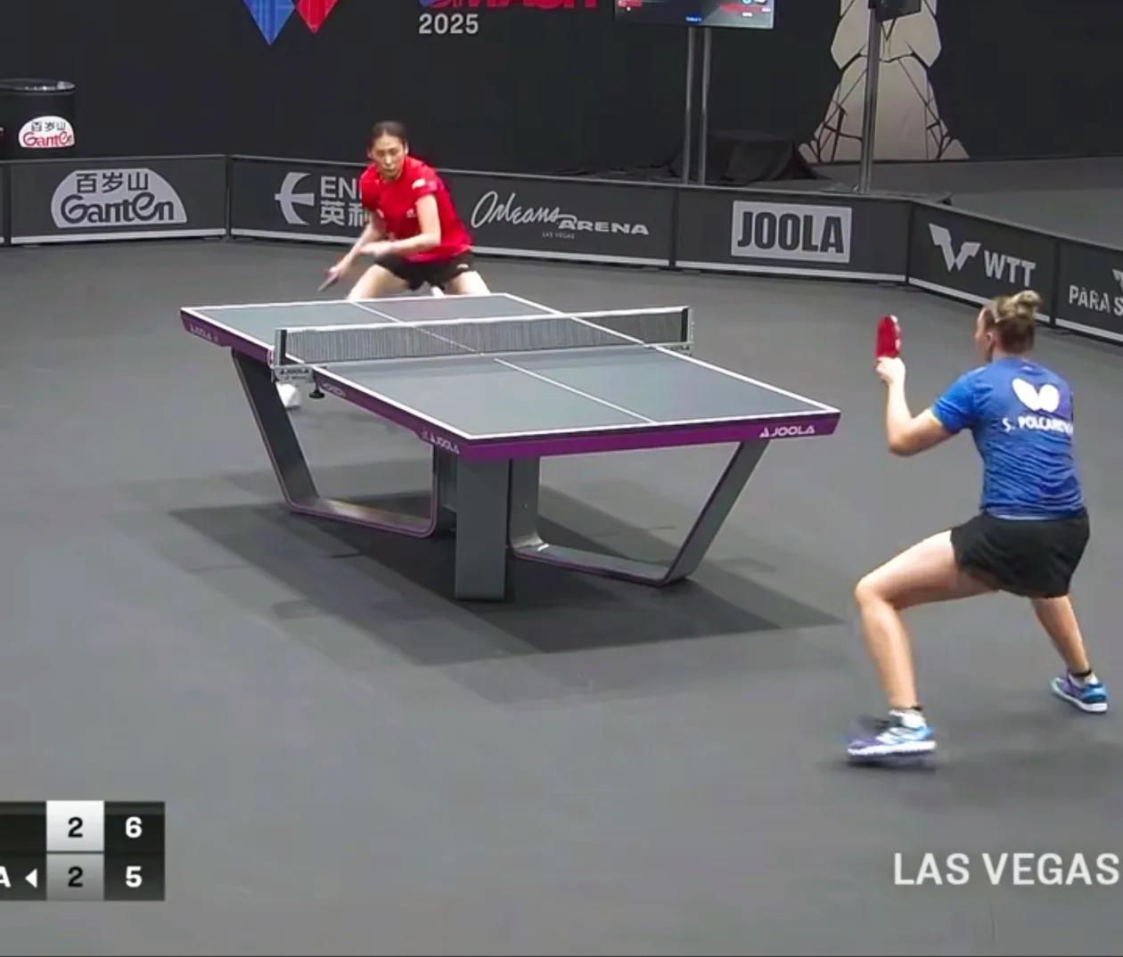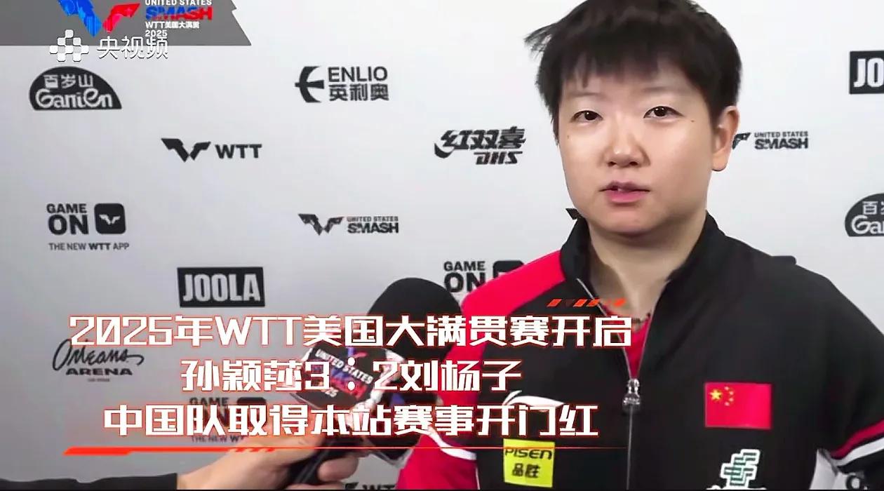 第一場出場的是凌晨4:40,孫穎莎對戰澳大利亞華裔選手劉楊子,面對世界第一的挑戰,劉楊子賽前準備得很充分,給孫穎莎制造了不小的困難, 然而孫穎莎畢竟是世界第一,盡管過程起伏比較大,孫穎莎還是以3:2的大比分贏下了比賽,為中國乒乓球隊贏得了開門紅。