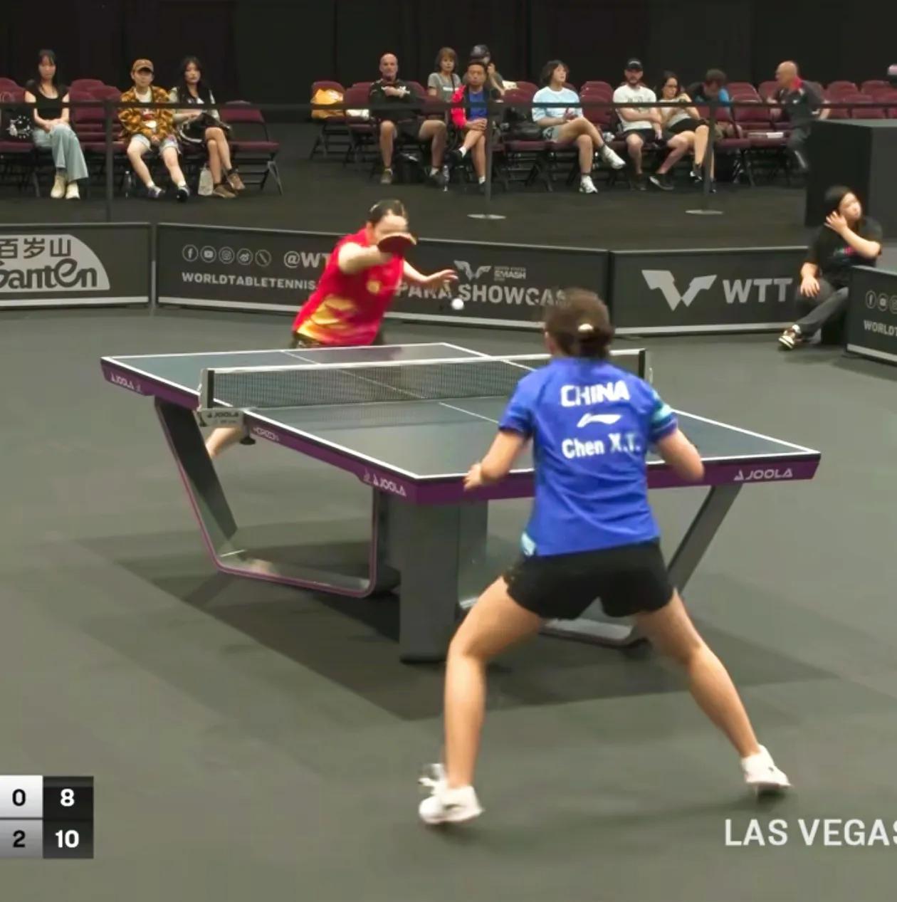 9:35,中國隊迎來了本次大滿貫賽的首場內戰,在世界排名第四的陳幸同和世界排名第23的何卓佳之間展開。一開始比賽上來何卓佳進入狀態非??欤氏纫?2:10,11:3拿下兩局,并且在第三局拿到了賽點,但陳幸同作為老將,比賽經驗豐富,挽救了兩個賽點,并且連續得分以12:10扳回一局。在第四第五局,陳幸同分別以11:4,11:9的比分贏下比賽。
