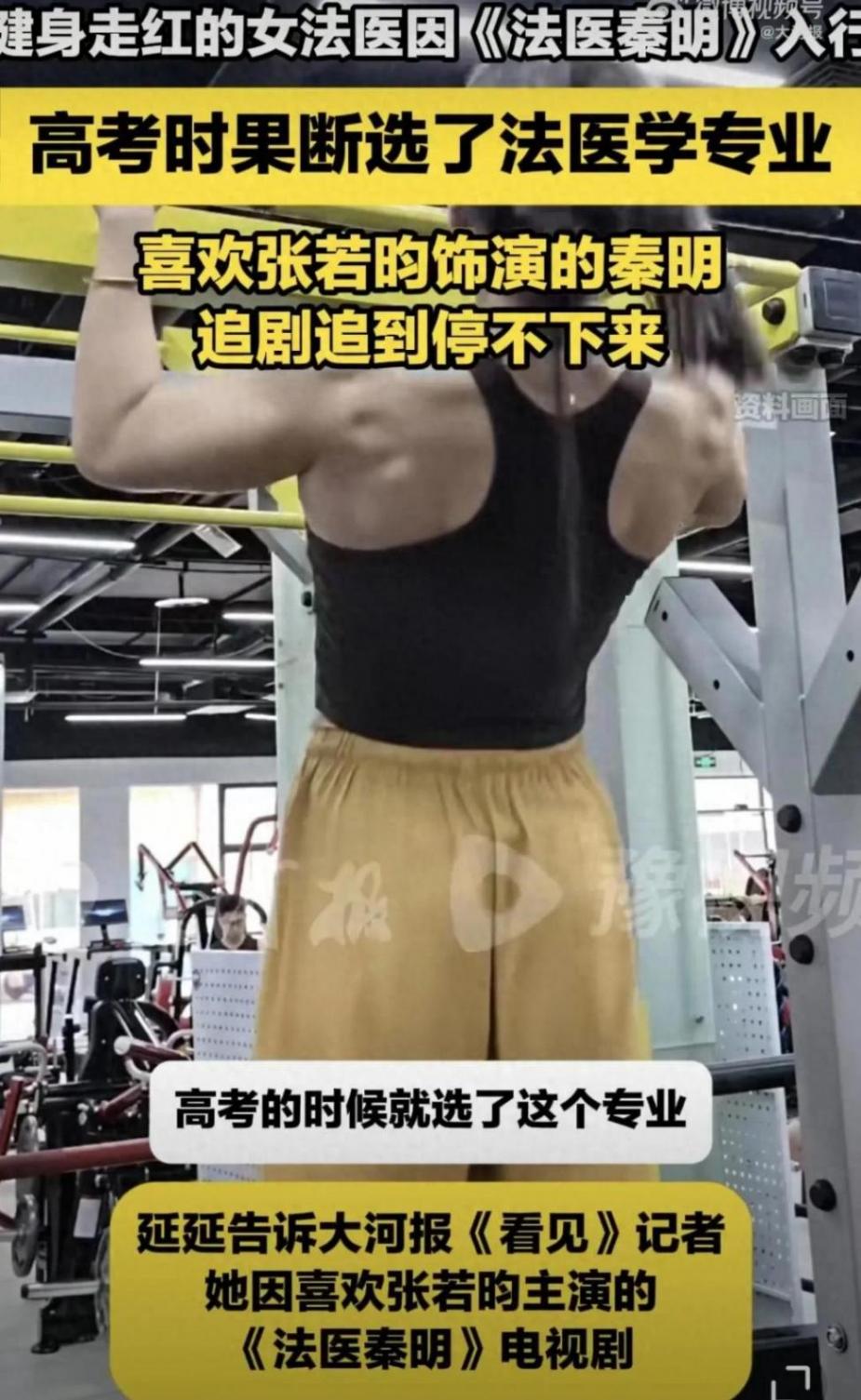 在延延的社交賬號里,最火的視頻是她的反差日常:上午在解剖室用解剖刀劃開皮膚組織,下午在健身房舉著20公斤啞鈴練肩背;一邊講解尸斑形成原理,一邊演示如何練出馬甲線。