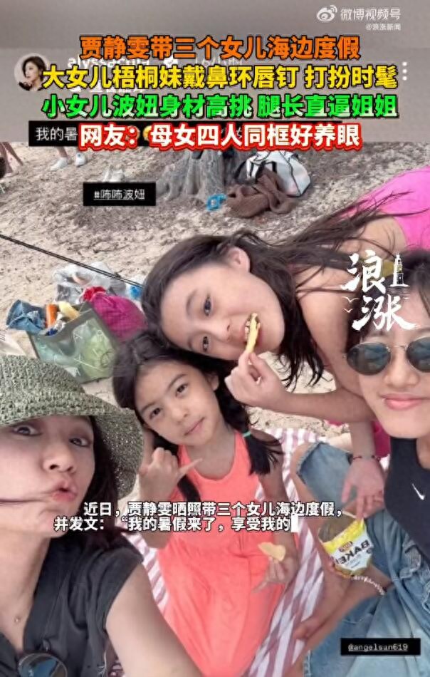 近日,賈靜雯曬照帶三個女兒海邊度假,并發文:“我的暑假來了,享受我的少女時代。”大女兒戴鼻釘、唇釘,打扮時髦。小女兒波妞又長高了,大長腿直逼姐姐。