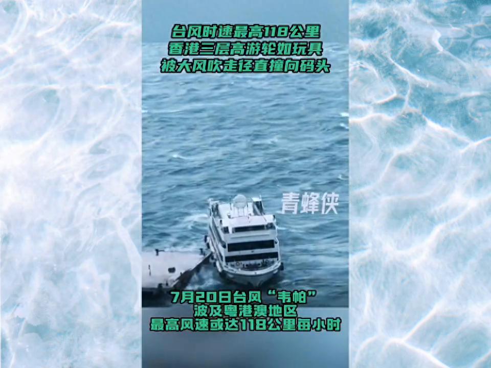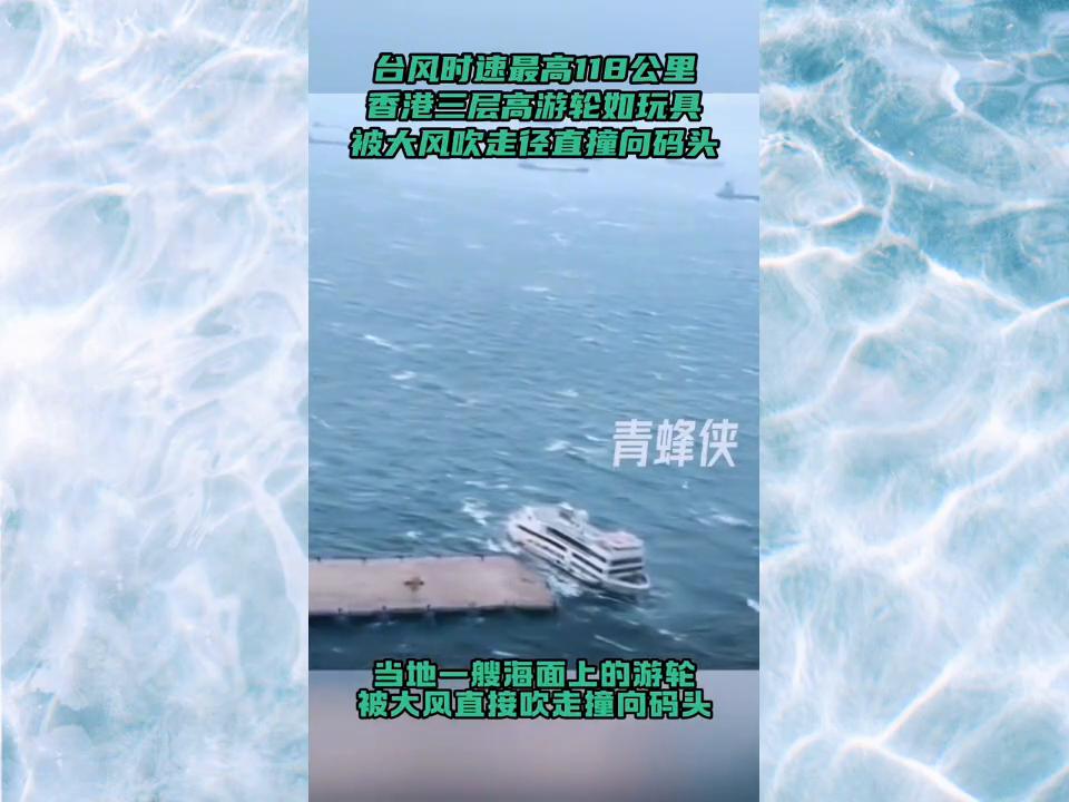 臺(tái)風(fēng)時(shí)速最高11日公里,香港三層高游輪如玩具被大風(fēng)吹走徑直撞向碼頭。