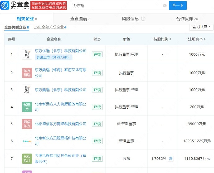 孫東旭是南開大學畢業的,計算機專業,也算高材生呢,零七年就去新東方了,當過老師,也當過校長,一步步往上爬,也挺厲害的,俞敏洪覺得他很重要,是東方甄選的創始人之一,東方甄選能做這么大,離不開他,之前是CEO,后來被免了,又卸任了董事,最后回來直播,這一路折騰,誰都覺得看不懂,但是這人走了。