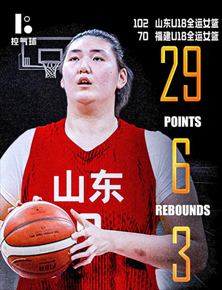 北京時間11月6日,廣東中山市體育館,全運會U18女籃小組賽山東對陣福建。山東隊102-70大勝,核心張子宇11投全中,罰球12中7,獨砍29分6籃板3助攻1蓋帽。這已是她小組賽第二場爆發,首戰對河南她13投11中得26分,兩戰合計24投22中,狂轟55分9籃板,投籃命中率高達91.6%。