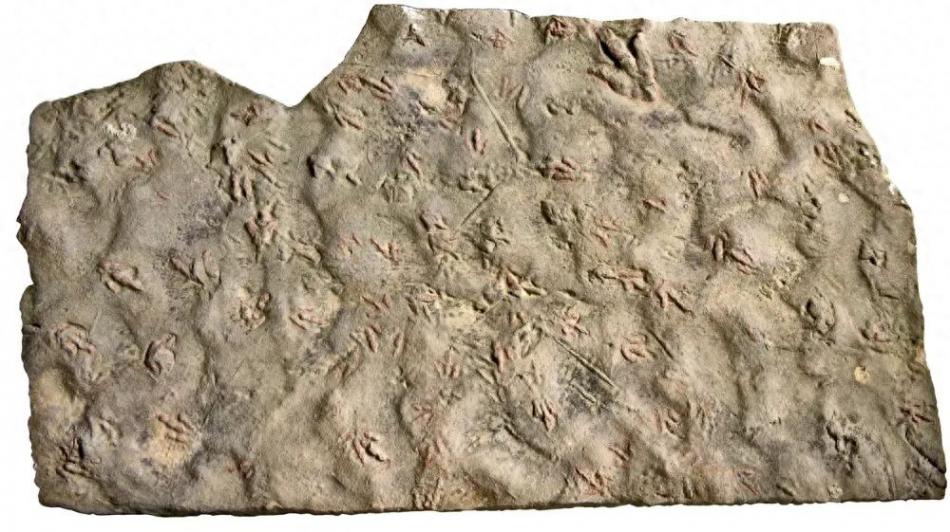 此次研究的核心標(biāo)本由8塊石板組成,其上密布著413個清晰的三趾型獸腳類足跡。足跡密度極高,其中一塊石板的足跡密度達到每平方分米約2個,是中國下侏羅統(tǒng)中密度最高的獸腳類足跡記錄之一。