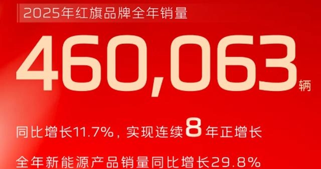 2025年,一汽紅旗全年賣出460063臺,新車主排隊走路搖頭晃腦的畫面,我已經能在路上腦補出來了。同比增長11.7%,而且是連續第八年正增長,在這么卷到離譜的車市里,這成績放在任何一個品牌身上,都夠在發布會上上桌第一個動筷了。