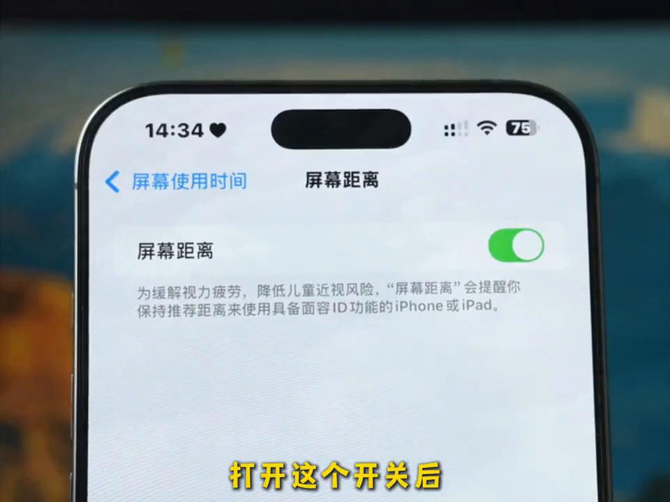·然后進(jìn)入設(shè)置找到屏幕時間,點擊屏幕距離,打開這個開關(guān)后,手機(jī)離人臉過近時會出現(xiàn)護(hù)眼提示。